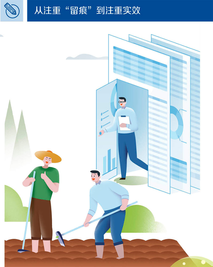 考核一味要材料、报数据、查痕迹,甚至让基层多头填报、重复填报也是基层反映最强烈的问题之一。落实中央要求,各地丰富改进考核方式方法,着力把考核工作的重点放在日常监测和动态评估,注重吸纳群众口碑和社会评价,持续倒逼各部门不争“评时”争“平时”。江苏张家港市通过随机抽样、电话或现场调研的方式,把群众评议、社会评价纳入考核体系。福建泉州市提高数据采集的自动化、智能化水平,减少佐证材料,佐证材料可以从公开网站上提取的,标注链接位置即可;涉及市委、市政府出台的正式文件,提供发文字号即可。山东济宁市将数据服务向社区延伸,网格员可从镇街数据节点平台获取共享数据,社区数据摸排工作量减少近90%,切实把干部从重复性的工作中解脱出来。