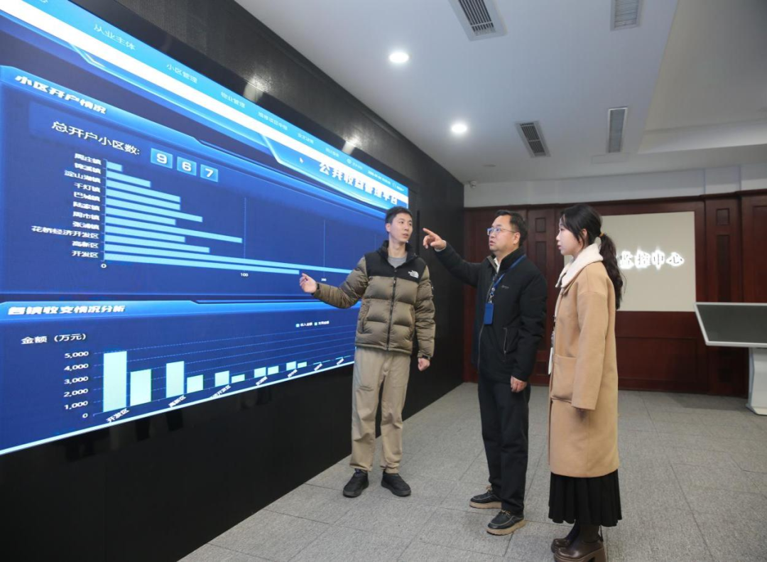 昆山市纪检监察干部通过“昆物通——昆山市公共收益管理平台”,在线监督小区物业公共收益使用公开情况。(梁姿姿 摄)