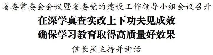 2月28日,省委常委会会议暨省委党的建设工作领导小组会议召开,深入学习贯彻习近平总书记关于树立和践行正确政绩观学习教育的重要讲话和重要指示精神,全面落实中央党的建设工作领导小组会议和有关通知要求,审议我省学习教育《实施方案》,部署启动我省树立和践行正确政绩观学习教育工作。省委书记、省委党的建设工作领导小组组长信长星主持会议并讲话。