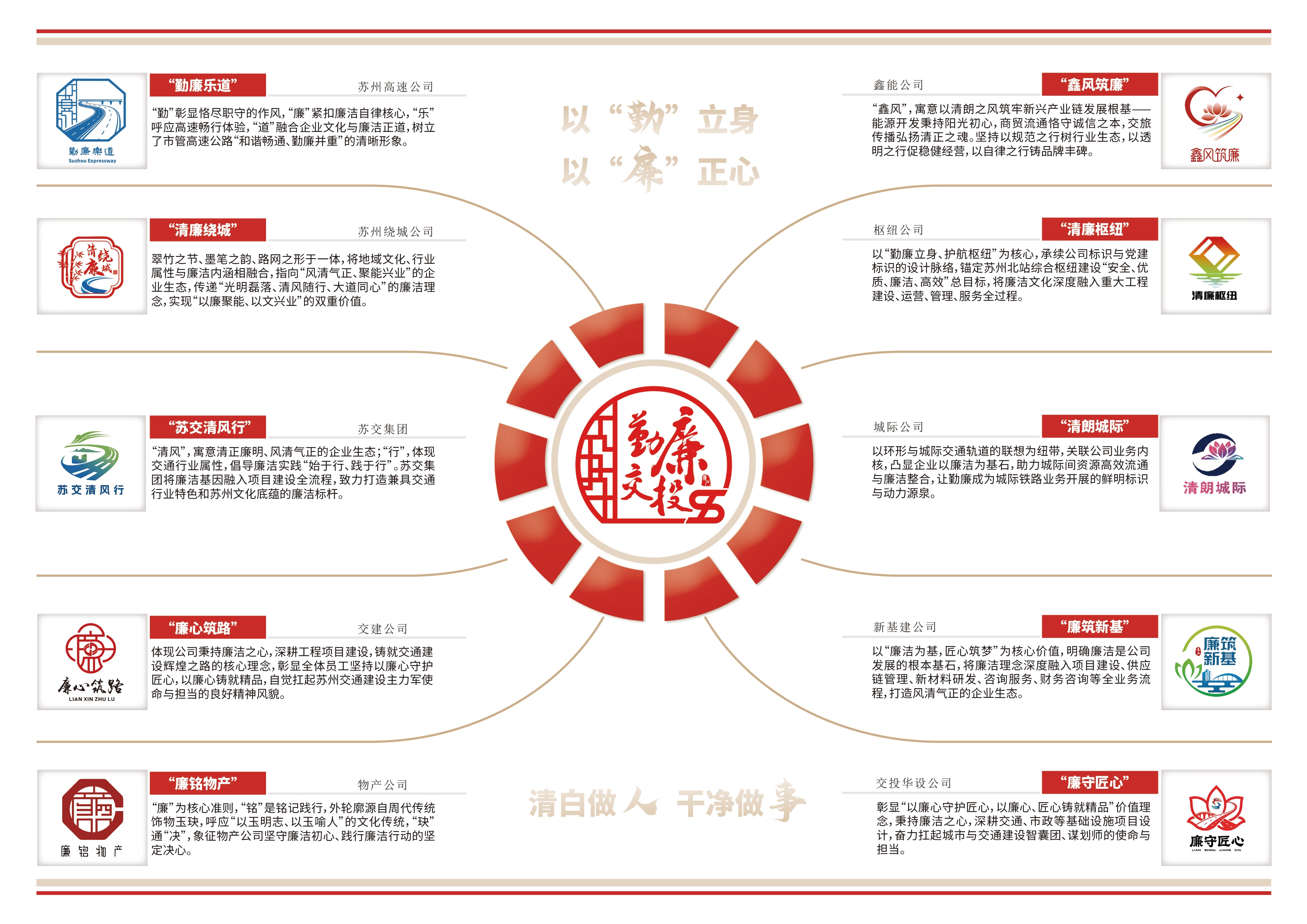 为深入贯彻习近平总书记“加强新时代廉洁文化建设”指示精神,落实全面从严治党和党风廉政建设要求,近日,苏州交投集团纪委正式发布“勤廉交投1+N”品牌体系。这标志着集团廉洁文化建设进入体系化发展的新阶段,为推动企业高质量发展筑牢了坚实的廉洁根基。