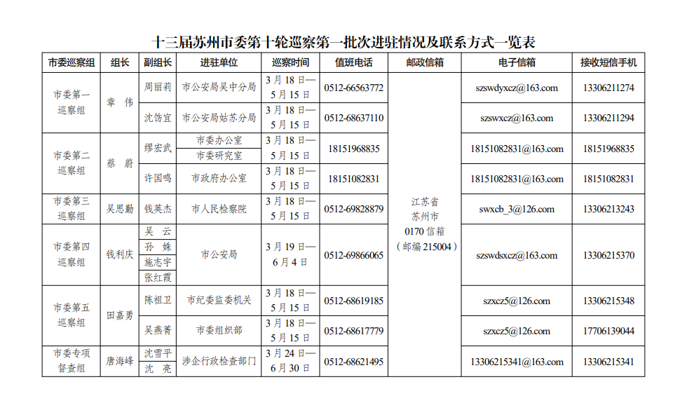 根据市委关于巡察工作的统一部署,十三届市委第十轮巡察采取“一次动员、两批实施”的方式压茬推进,日前已完成首批进驻工作。市委巡察组将对市纪委监委机关、市人民检察院党组、市委办公室、市政府机关党组、市委组织部、市委研究室、市公安局党委开展巡察,延伸巡察市公安局吴中分局、姑苏分局党委,同步对市委第七轮巡察中规范涉企行政检查专项巡察发现问题的整改情况开展专项督查。